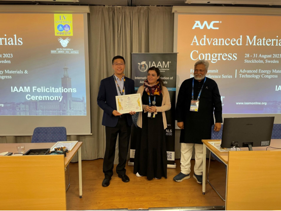 国际先进材料学会(IAAM)是全球先进材料领域著名国际性学术组织,总部设在瑞典。该组织聚集了世界范围内材料科学与技术领域的优秀科学家,致力于为先进材料科学、工程和技术在世界范围内的快速发展提供高水平学术平台,现已发展成为材料科学领域各类学科领军人才的聚集地,目前拥有来自超过125个国家的80000多名会员,已成为材料与工程科学领域杰出科学家的聚集者和领导者。“IAAM Scientist Medal”是由国际先进材料学会根据研究人员近10年来在先进材料领域所做的工作在世界范围内进行提名和评选,最终授予在先进材料科学与技术领域做出重要贡献的研究人员,以表彰他们在专业领域取得的显著成就。