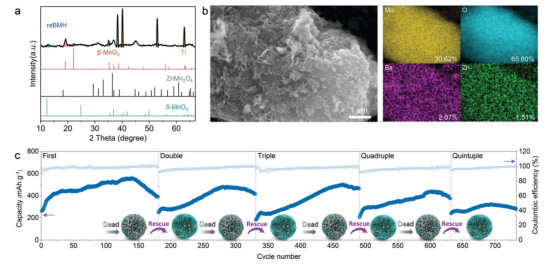 ✔4. 重生!更重要的是,作者首先展示了一种基于上述分析和协议的 Mn 基 ZIBs 故障的回收策略,该策略有望使电池寿命延长五倍。相关结果表明,考虑到再生电极仍然具有具有竞争力的电化学性能,通过这种简便的低成本可扩展挽救策略,有望在工业上实现电池的回收和迭代制造。该战略有望实现资源回收、减少污染和成本削减。