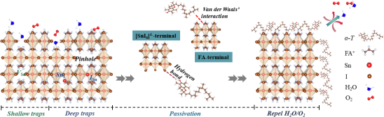 图2. Sn基钙钛矿缺陷示意图及相应的缺陷钝化策略。
