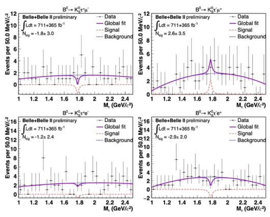 日本超级B介子工厂的Belle及Belle II实验近十年内采集了超一亿对B介子对,是目前国际上B物理研究的主要场所。宋维民教授团队的刘美宏博士,联合法国国家科学研究中心CNRS研究员Karim Trabelsi等合作者,近日在Physical Review Letters发表成果,首次搜索了B0 → Ks0 τ l(l = e, μ)这一典型的轻子味破坏(Lepton Flavor Violation, LFV)过程。在这个过程中,一个B介子同时产生了τ和另一种轻子(e或μ),意味着轻子味发生了变化。这不仅是全球首次针对该过程的实验研究,也是 Belle II 数据首次被直接用于B介子 LFV 搜索,展示了这一新一代实验在探索新物理中的潜力;研究选择了信号极其纯净的Ks0 →ππ 衰变过程,凸显出 Belle 与 Belle II 相比强子对撞机实验的独特优势;同时,开发机器学习分类器来抑制τ→ρ(→ππ0)v衰变中的光子本底,让这一最主要的τ衰变过程首次、并高效地在在B→Kτl 分析中利用,大幅提升了分析灵敏度。B0 → Ks0 τ e的结果是迄今为止世界最严格的限制,B0 → Ks0 τ μ的结果也已经达到国际领先水平。