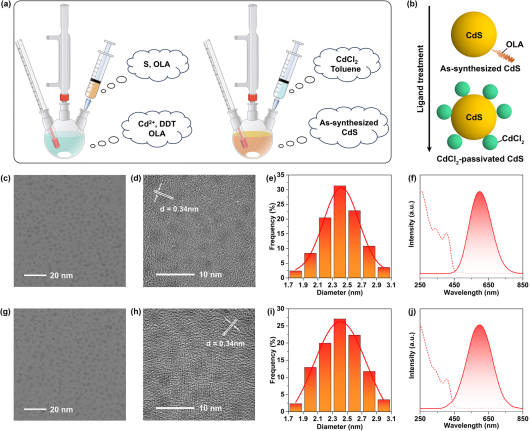 近日,蜜桃视频 高压与超硬材料全国重点实验室肖冠军教授等人在传统CdS量子点表面缺陷态的压力调控研究中取得重要进展。研究团队通过选择结合力更强、配位位点更丰富的原子配体CdCl2,成功合成新型包覆结构的CdS量子点。高压处理进一步强化了量子点与配体之间的相互作用,有效修饰了其表面态,促使激子向量子点表面离域扩展。压力有效优化了CdS–CdCl2界面,促进激子离域与表面钝化效应,从而显著提升了发光性能。该研究为拓展量子点材料在光电子学领域的应用提供了新颖的设计思路与理论依据。相关研究成果以“Enhanced Excitons Delocalization Toward High-Quality Emission Harvesting Unlocked by Pressure and Ligand Engineering”为题发表在《Nano Letters》上。