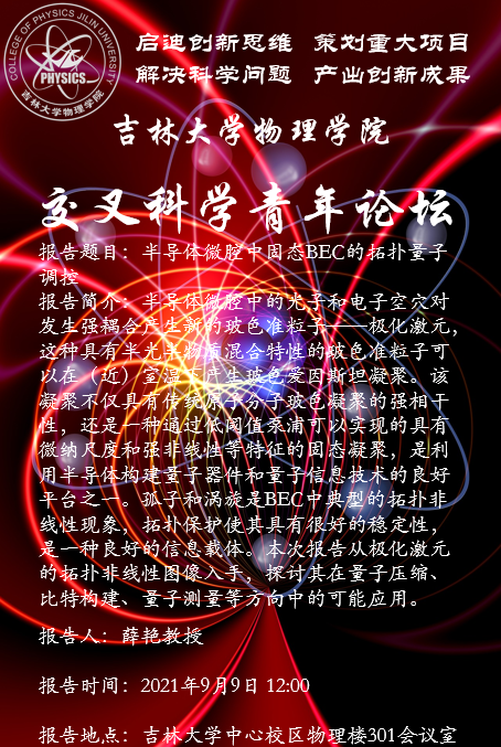 报告题目:半导体微腔中固态BEC的拓扑量子调控