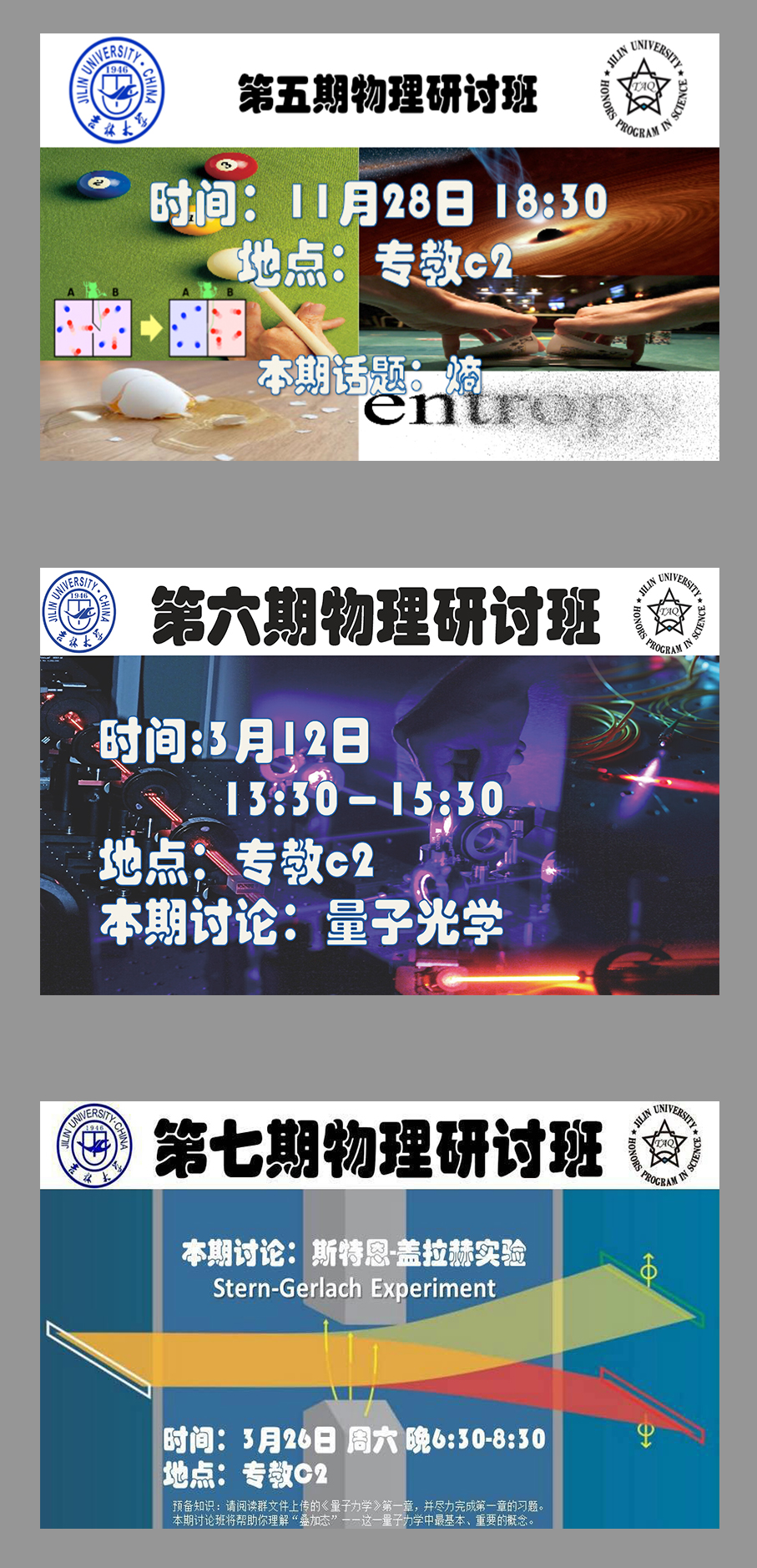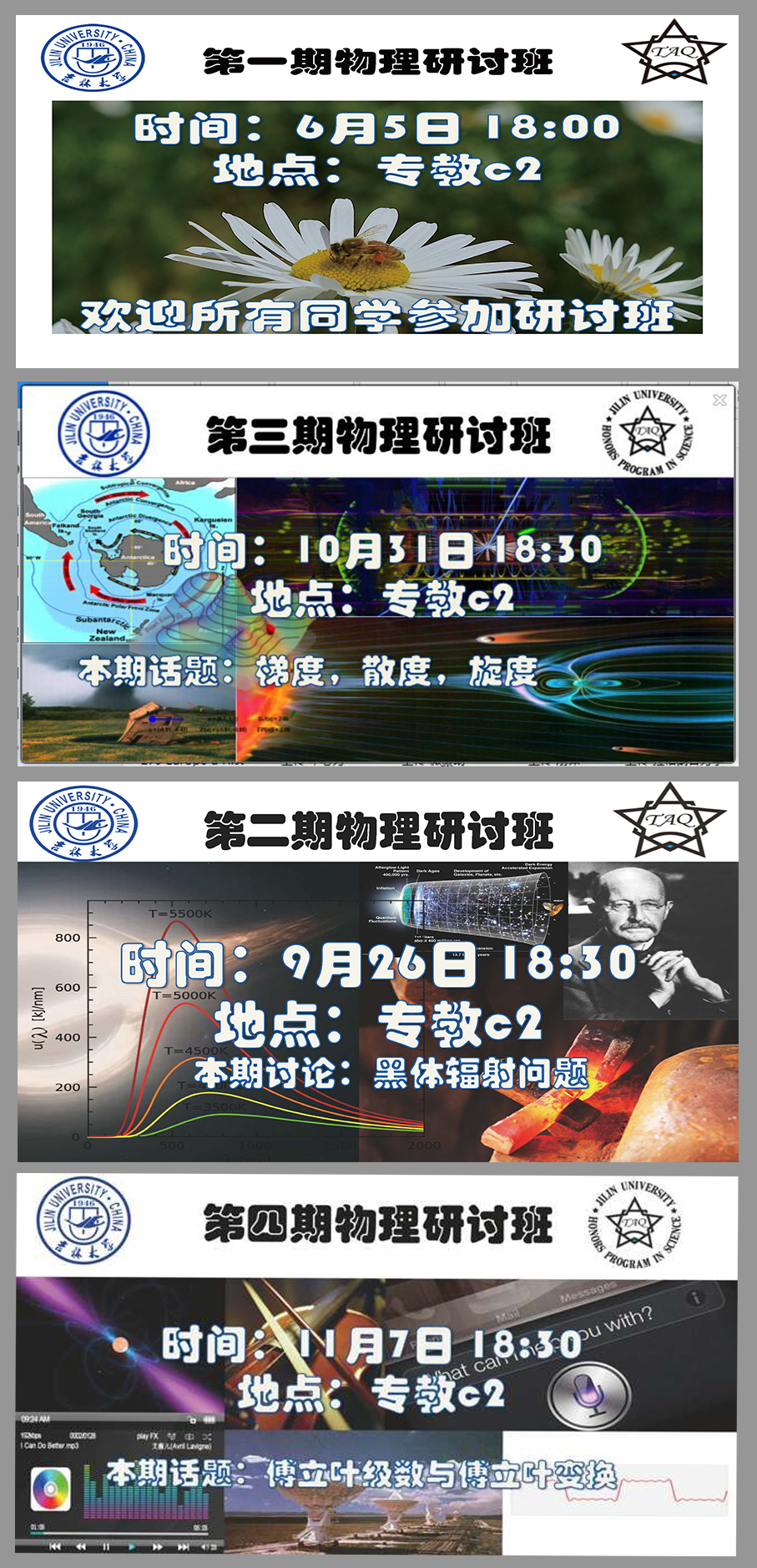 物理研讨班”目前已举办了七期,内容涉及“玻色爱因斯坦凝聚”,“黑体辐射”,“梯度,旋度,散度”,“傅立叶级数与傅立叶变换”,“熵”,“量子光学(光与原子相互作用)”,“斯特恩-盖拉赫实验”等等,每期活动时长约为2个小时,得到了蜜桃视频