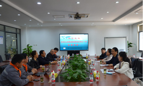 党委书记孟文卓、副院长孙成林、副院长杨景以及院校友办公室工作人员周淼等一行4人到安徽大地熊新材料股份有限公司调研。大地熊执行总经理、稀土永磁材料国家重点实验室主任、86级校友衣晓飞,常务副总经理、93级校友陈静武,副总经理董学春,副总工程师、国家重点实验室副主任刘友好,技术中心副主任、86级校友黄秀莲,技术中心主任助理查善顺等接待了孟文卓一行。