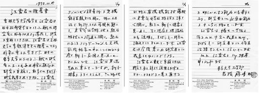图5 我是吉大和东大联合培养的博士生,需要藤岛先生的推荐意见。他用毛笔为我书写的提前回吉大参加博士论文答辩的推荐信,我也因此提前一年拿到吉大化学系的博士学位!无需翻译,阅读信中的汉字就能基本了解信的内容。
