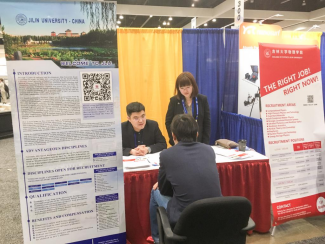 在会议中心设立专门招聘展位,吸引了百余名来全球各地的博士后、博士研究生前来咨询、投递简历。我院各位院长、人才工作办公室工作人员就物理学科发展、人才队伍建设、我校人才招聘条件、支持措施、发展平台等方面进行了深入交流与问题解答。