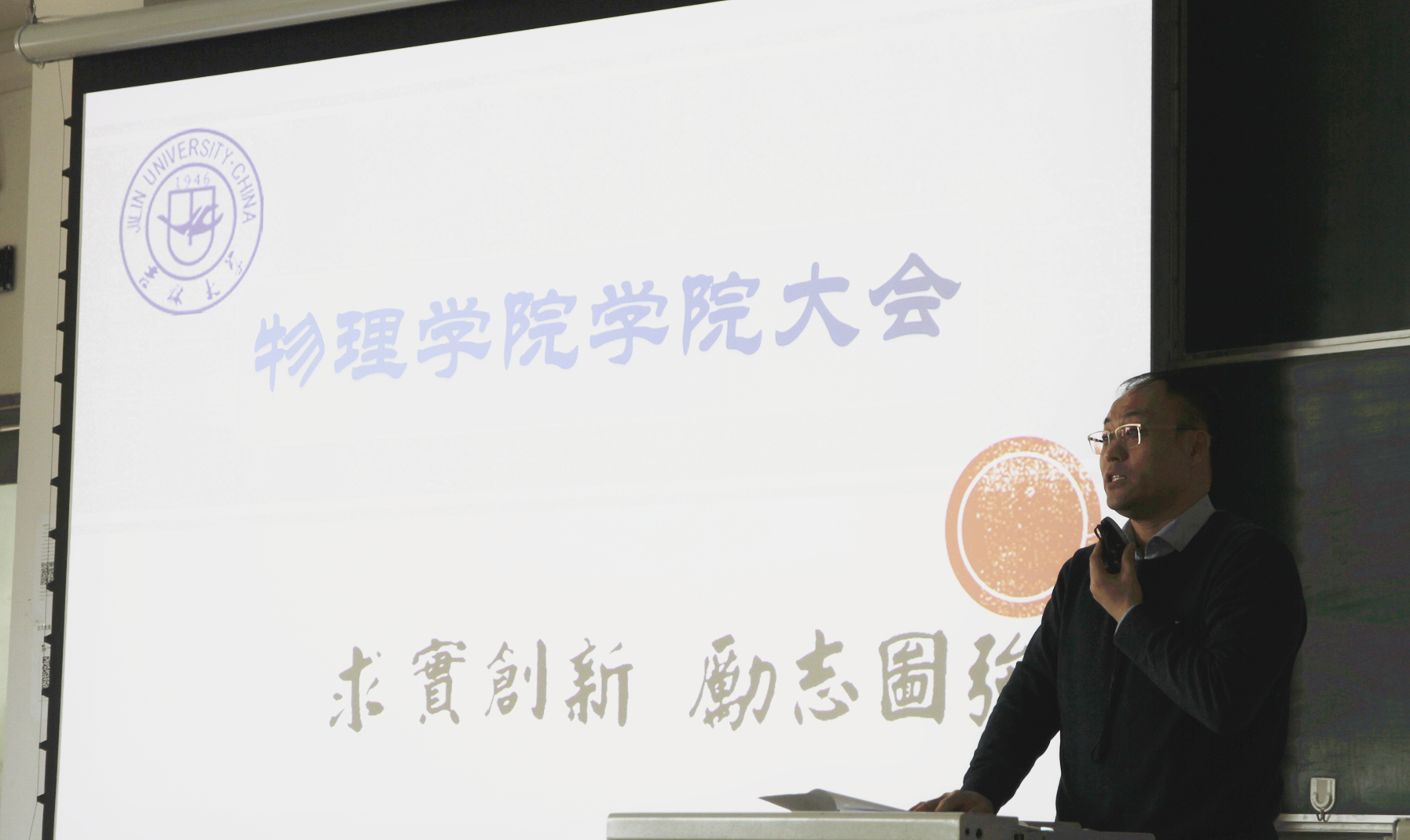 马琰铭院长作学院工作总结发言表示,一年来,学院在教学、科研和人才培养等方面取得了长足的进步,对学科未来的发展充满信心。在疫情防控方面,全院师生凝心聚力、众志成城,出色完成了疫情防控各项工作任务;在学科建设方面,学院不仅圆满完成了第一轮“双一流”学科建设任务,还积极拓展特色学科新方向,挂牌成立了计算方法与软件国际中心,率先在“双一流”高校中布局成建制的计算物理学研究,满足国家发展基础学科的战略需求;在课程建设方面,学院获批4门国家级一流课程,物理学入选首批国家基础学科拔尖学生培养计划2.0;在人才引育方面,学院作为学校引留试点,制定出台“金种子”优秀人才培养计划,并持续引进高水平师资;在师资队伍培养方面,学院新增2名国家级“四青”人才,教师倪牟翠也荣获了“宝钢优秀教师”和“吉林省教学名师”奖。此外,他还对公用房收费工作、公共实验平台建设做出明确要求,对学院经费收入及使用情况做了进一步说明。