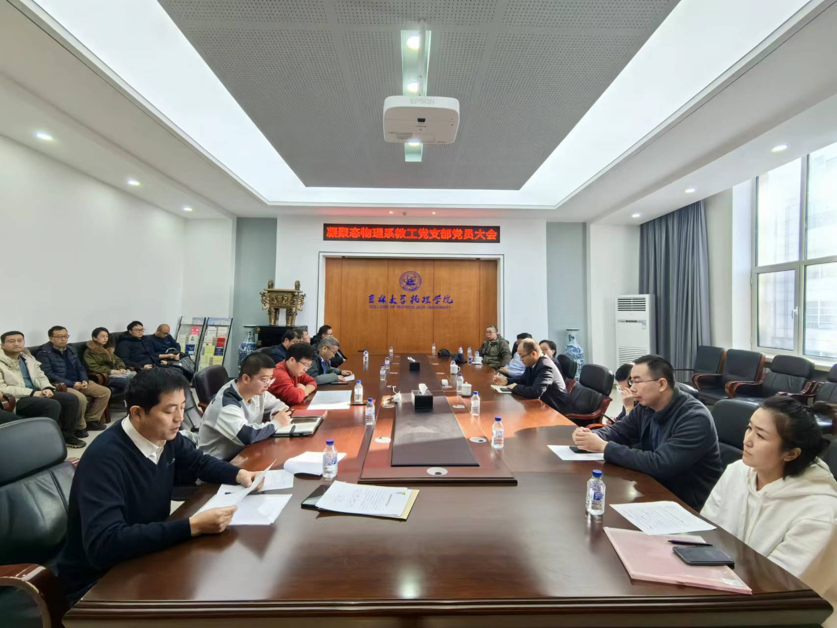 凝聚态物理系教工党支部党员大会及主题党日活动,与大家共同深入学习习近平总书记在全国高校思想政治工作会议讲话精神,他号召教师党员要带头落实立德树人根本任务,坚持“三全育人”鲜明导向,切实把主题教育成果融入工作实践、取得良好成效。