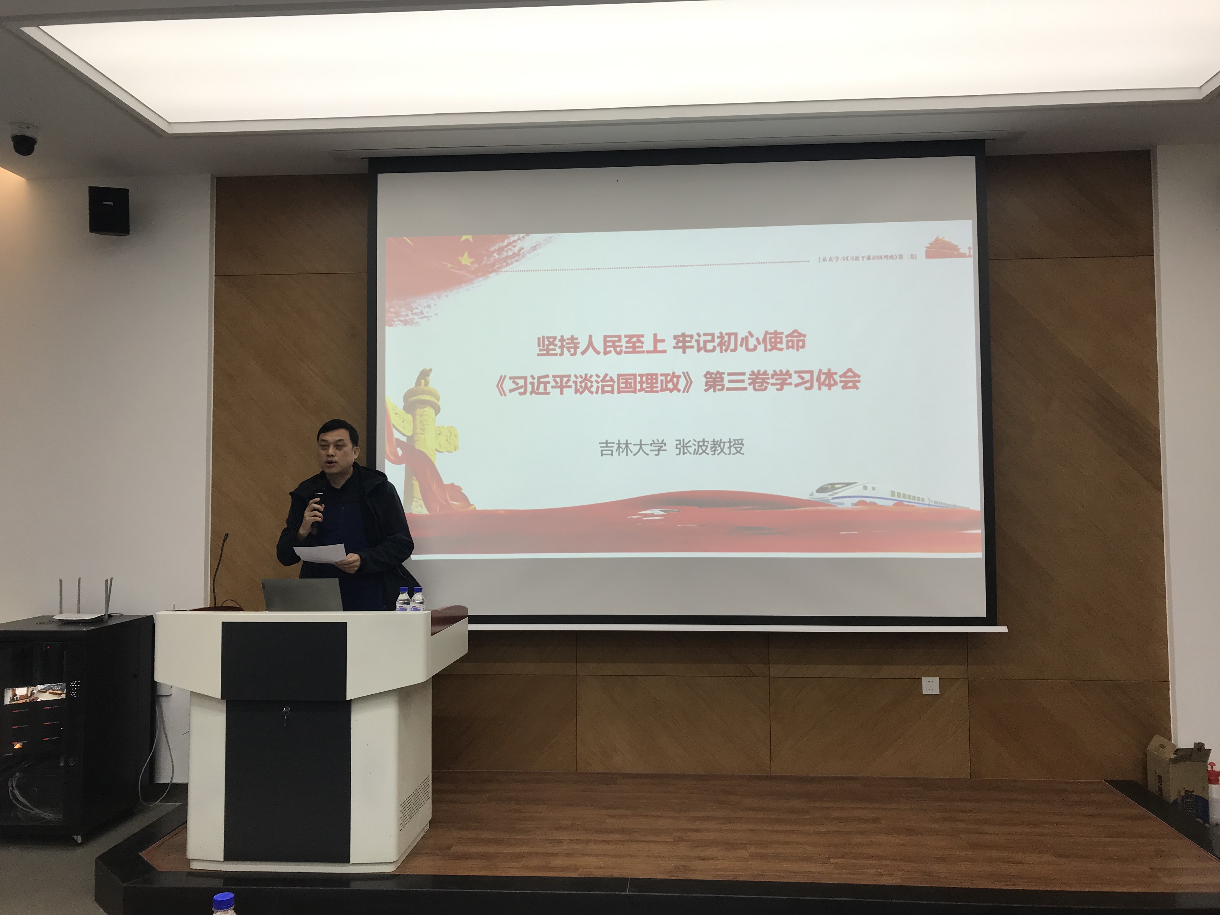 2020年11月5日下午,马克思主义学院张波教授在物理楼333报告厅作“坚持人民至上、牢记初心使命——《习近平谈治国理政》第三卷学习体会”专题辅导报告。报告会由学院党委副书记、纪委书记唐宗明主持,蜜桃视频