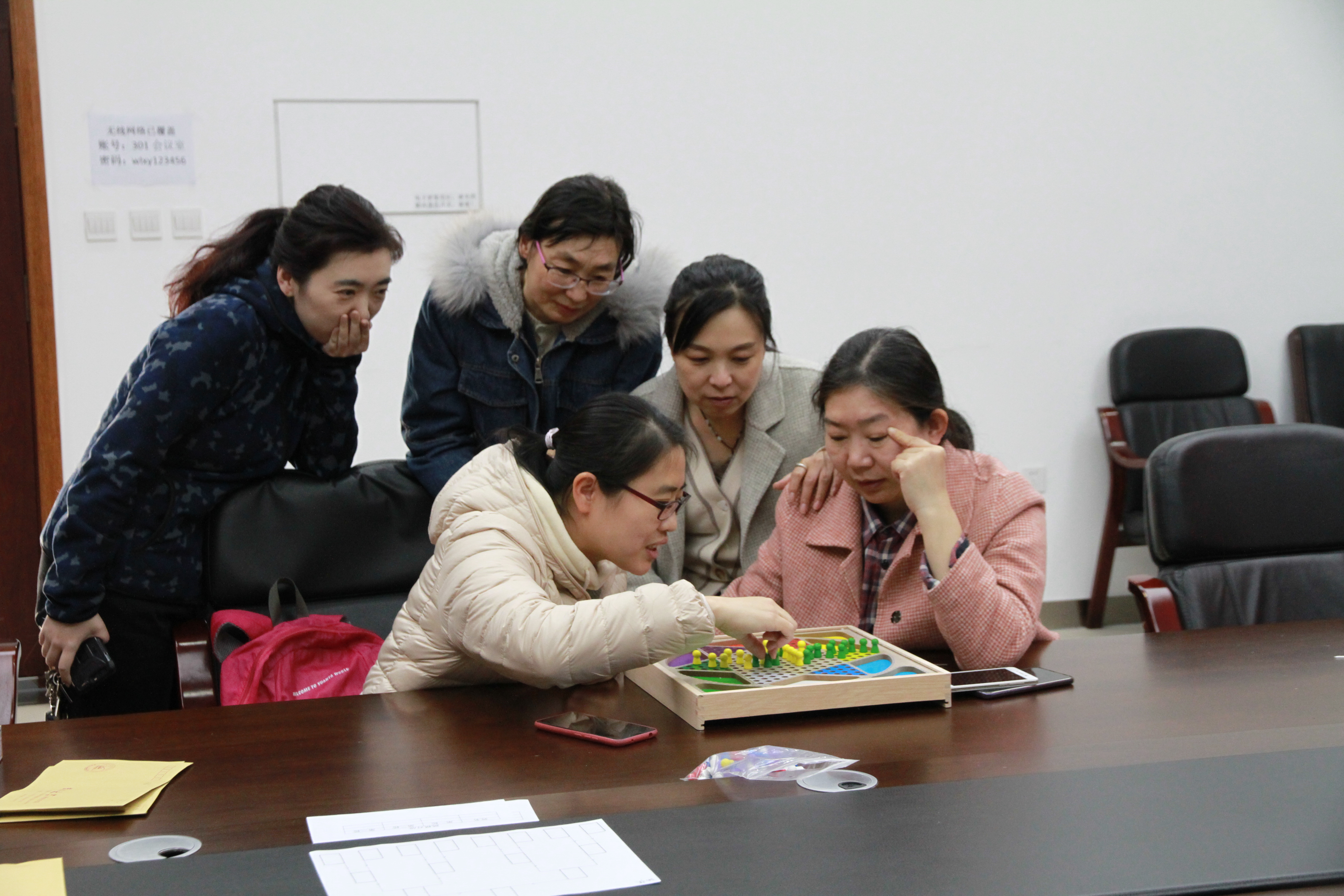 活动以“切磋棋艺,增加娱乐”为原则,共有中国象棋、五子棋、跳棋、大富翁棋四个活动区。楚河汉界内外,象棋为老师们提供了切磋技艺的平台,老师们落子深思熟虑、难分伯仲;黑白子之间,五子棋加深了大家对棋文化的了解,更有老师推广怀旧版五子棋新玩法;跳动的棋子在跳棋盘中会师,不断调动老师们机智灵敏的思维来寻找最优路线;大富翁棋盘上更是场景故事不断切换,机会牌惊喜变化,且看谁是最后的大富翁赢家。