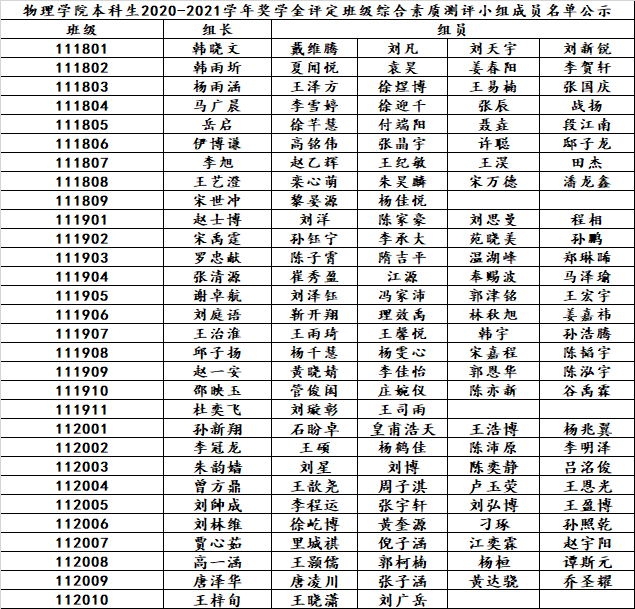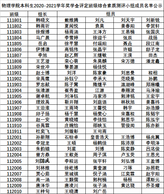 根据《蜜桃视频 本科生学年奖学金评选办法》、《蜜桃视频 优秀本科学生评选办法》、《蜜桃视频 优秀本科学生干部评选办法》,经蜜桃视频 奖助工作领导小组研究确定蜜桃视频 本科生2020-2021学年奖学金评定班级综合素质测评小组成员名单如下: