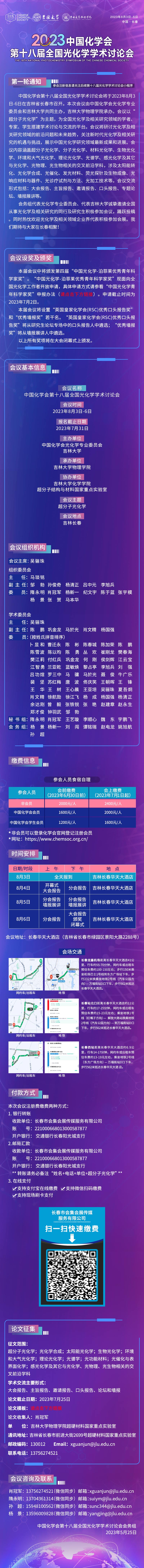 中国化学会第十八届全国光化学学术讨论会(第一轮通知)