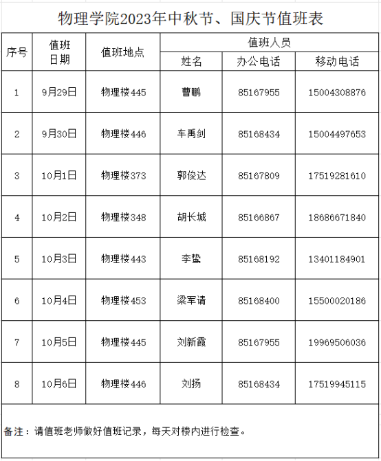 根据学校《关于2023年中秋节和国庆节放假的通知》的工作安排,现将学院2023年中秋节、国庆节放假安排通知如下: