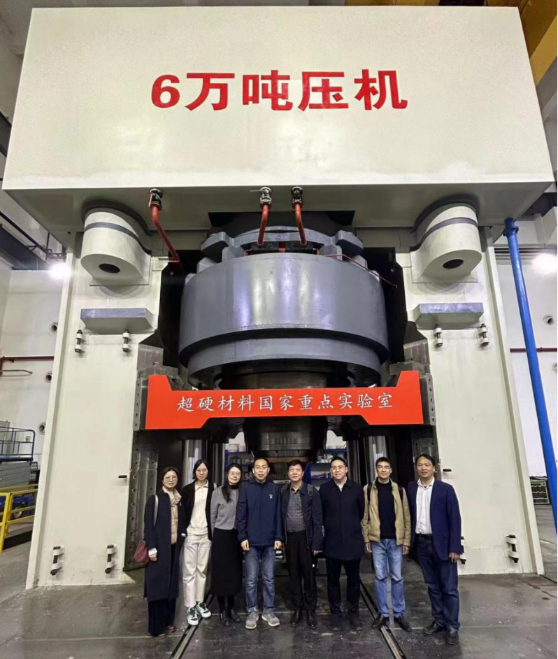 调研期间,由超硬材料国家重点实验室、综合极端条件高压科学中心副主任刘兆东陪同,倪士英一行实地考察了六万吨大压机装置、综合极端条件高压科学中心。