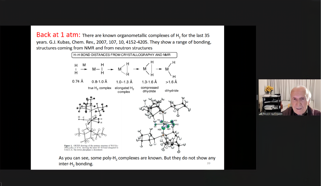 霍夫曼教授分享了他对于凝聚态物质材料中化学成键行为的思考,特别是标准大气压以及高压强极端条件下反常成键行为的理解,认为高压强下的一切奇异成键行为都是可以被常压基础化学理解。