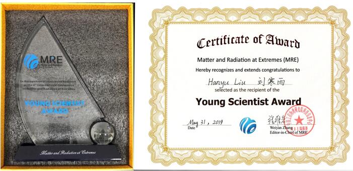 2019年5月31日,第四届国际极端条件下的物质与辐射学术会议(ICMRE)将“MRE青年科学家奖”(MRE Young Scientist Award)授予蜜桃视频