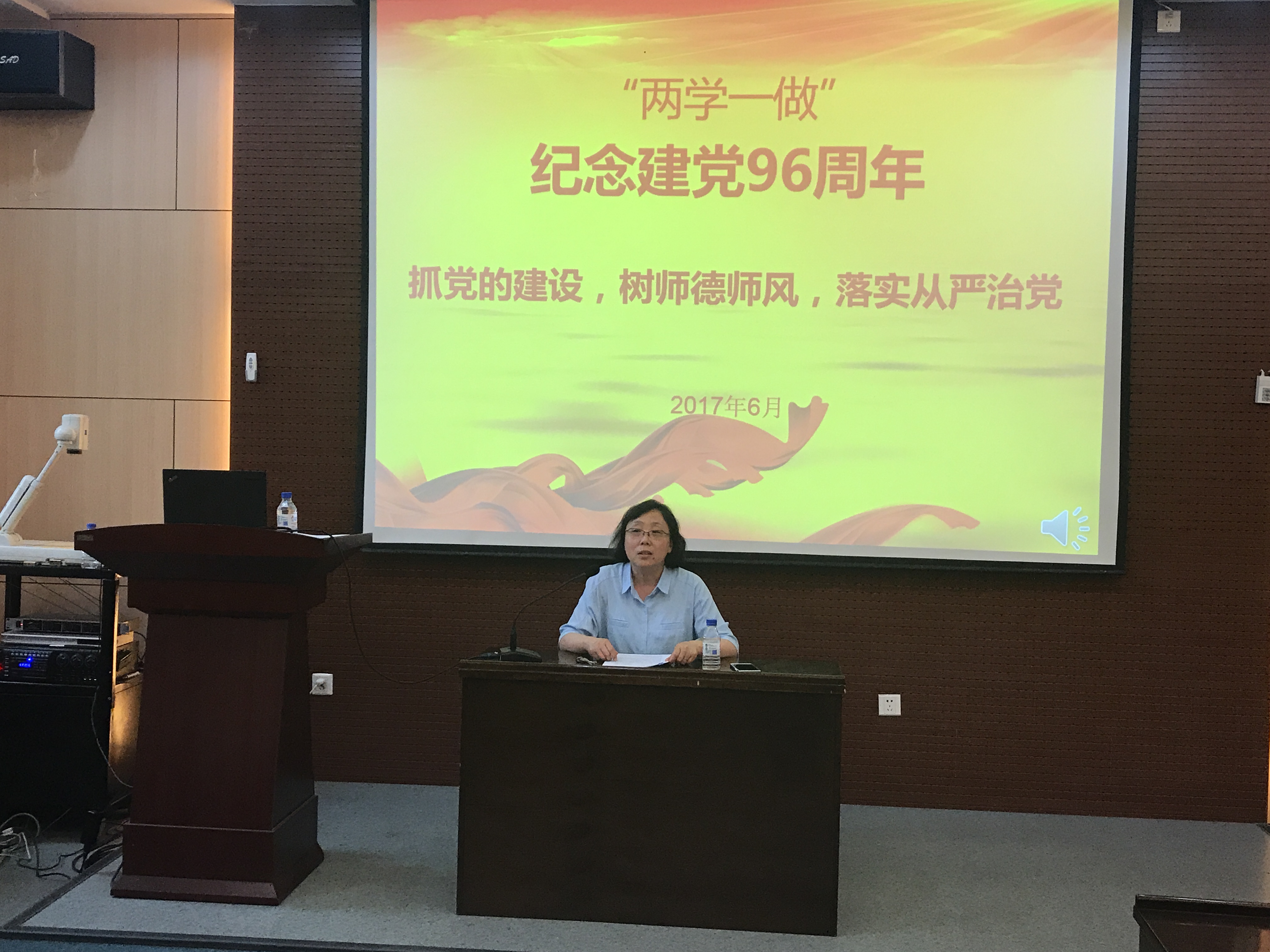 在颁奖仪式结束之后,党委书记孟文卓同志以“抓党建设,树师德师风,落实全面从严治党”为主题讲党课。在党课过程中,孟文卓书记全面深入讲解了从严治党在“核心”、“党建”以及“落实”这三个方面的体现,传达了中央提出党员合格的“四个标准”与习近平同志在全国高校思政工作会议上提出的师德师风建设的“四个坚持”,并结合自身经历与蜜桃视频