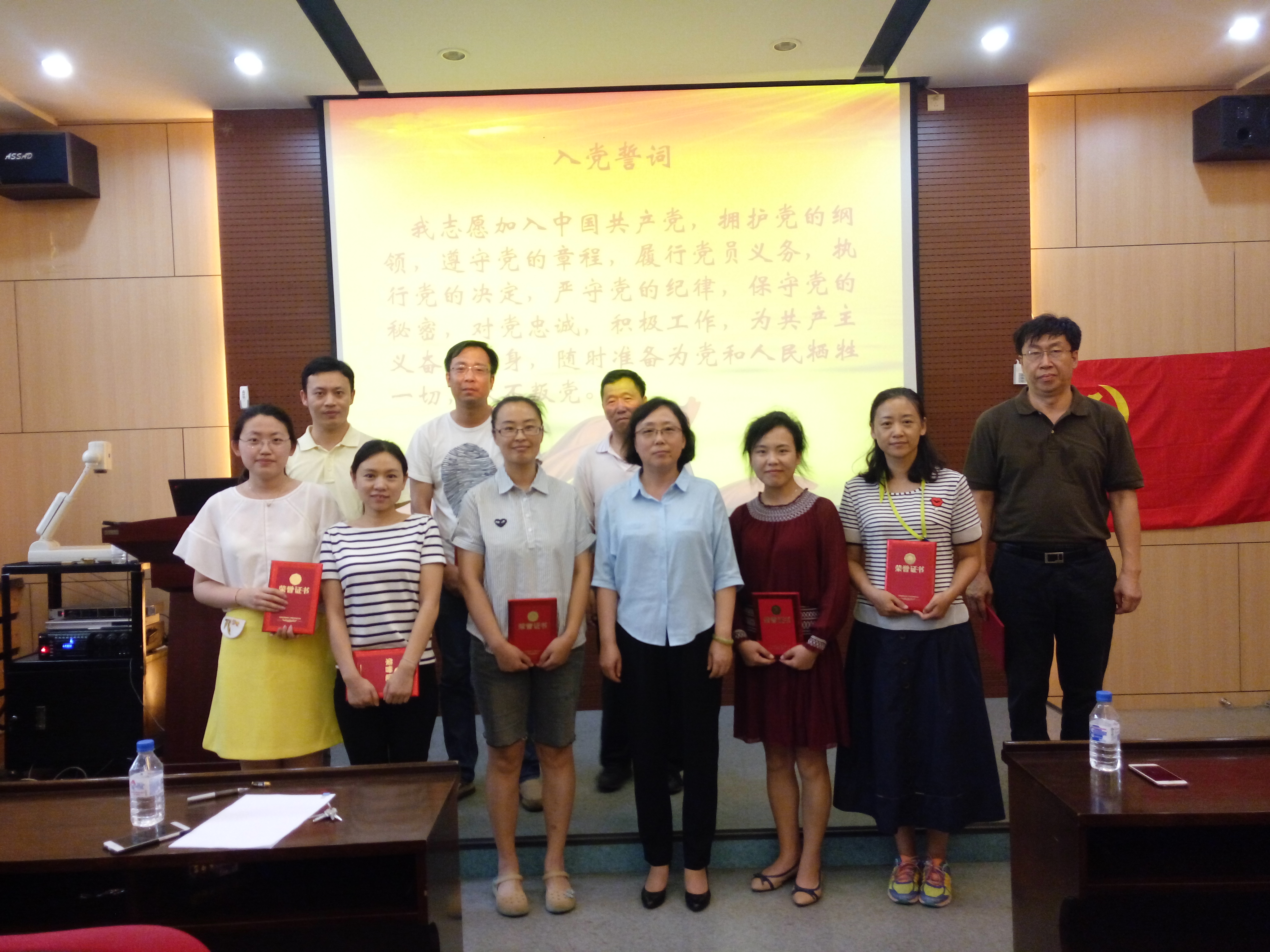 党委书记孟文卓为荣获“优秀共产党员”的同志颁奖并合影留念。