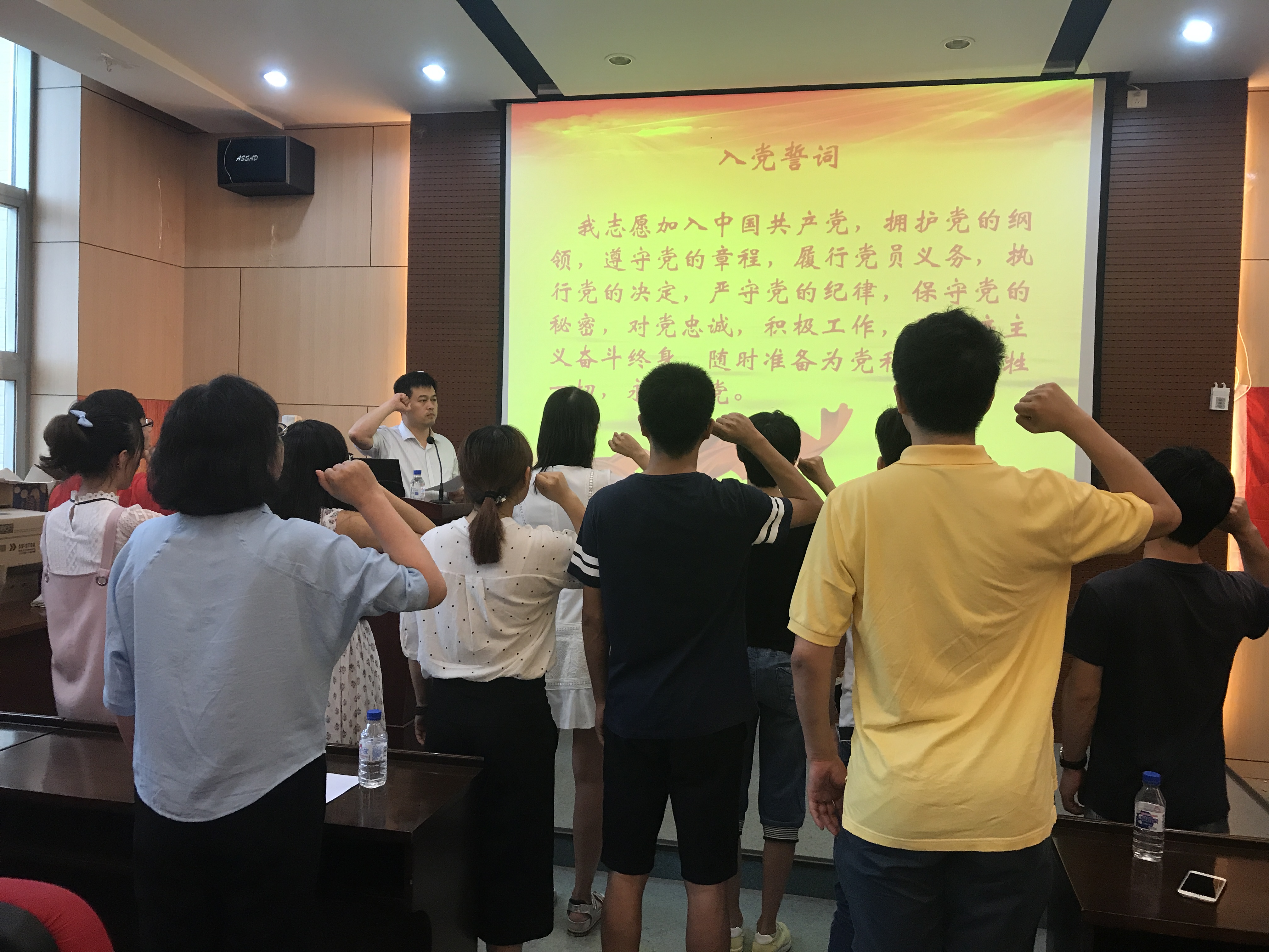 活动于庄严的国际歌中展开。各位党员在国际歌中体会前人的思想、经历与为国家和共产主义事业奉献终身的坚定信念。在此之后,新发展党员走上前来,与其他老党员一同重温的入党誓词。