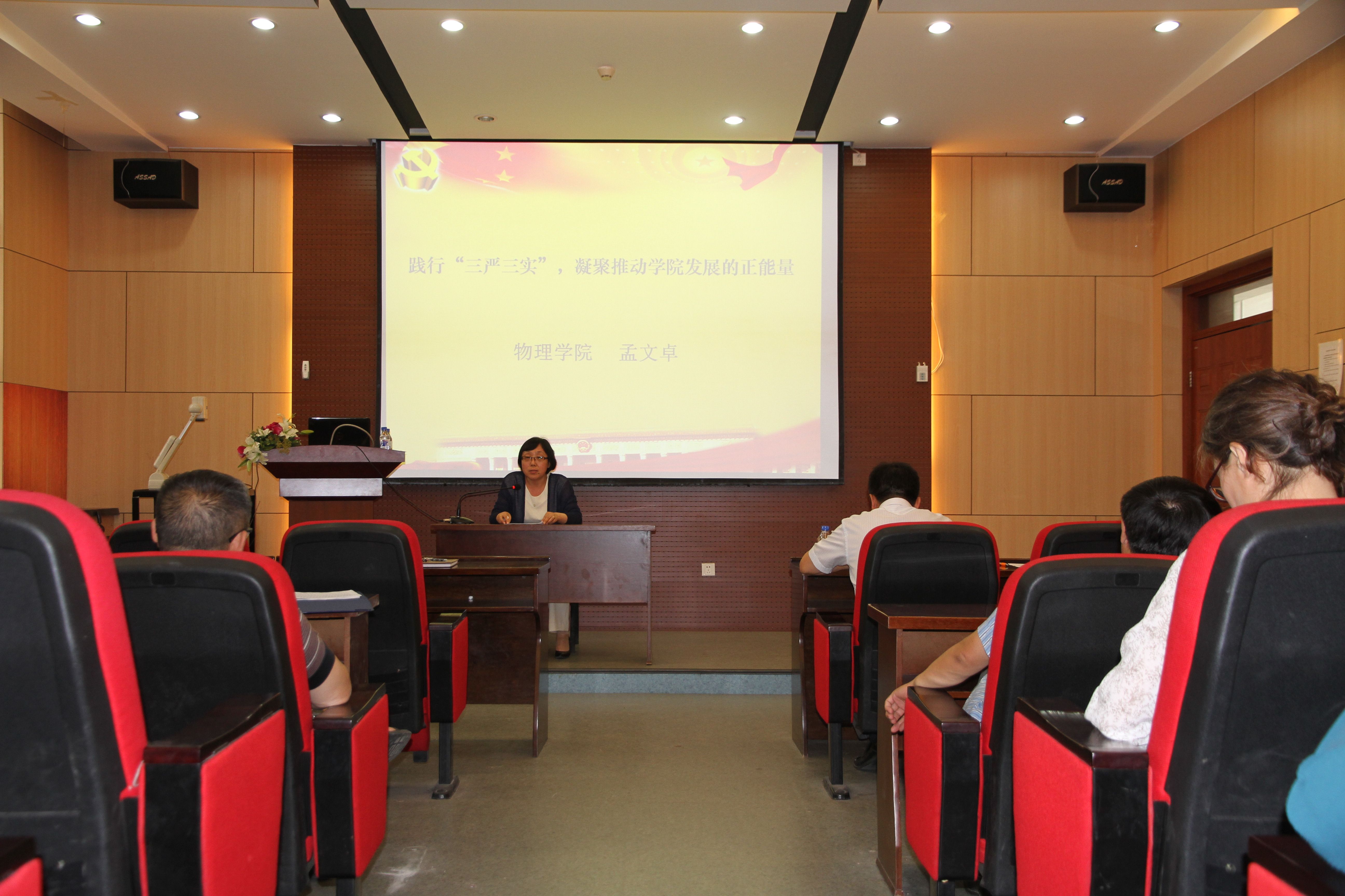 6月29日,蜜桃视频 在中心校区物理楼333会议室召开了“三严三实”专题党课暨动员部署会,学院领导班子成员、教工党员、学生党员代表参加,会议由党委副书记孙长轮主持。