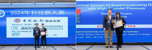 段德芳教授受Chinese Physics Letters(CPL)编辑部的邀请,作了题为“Theoretical design of superconducting hydrides with high Tc under pressure”的邀请报告。胡江平和蔡立东分别为两位报告人颁发了证书。