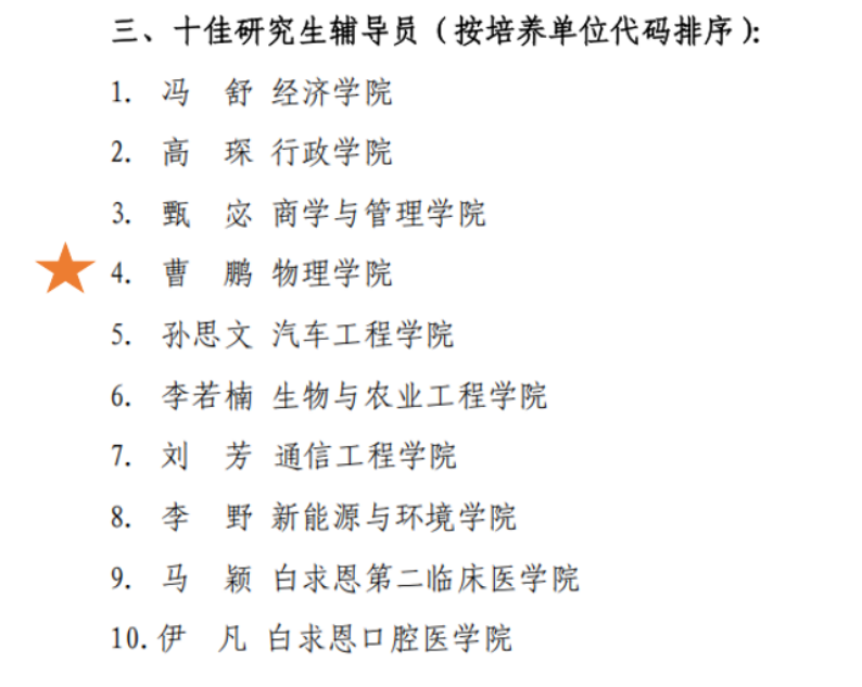 2024年度“十佳研究生辅导员”。