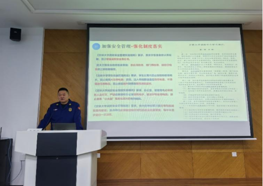 在防火安全知识讲座中,保卫处消防科董立明老师从强化安全意识、加强安全管理及落实安全制度三个方面展开讲解。他以校园火灾的常见诱因作为切入点,结合国内高校宿舍因违规使用电器、实验室操作不当引发火灾的典型案例,深入阐释了火灾的严重危害、初期扑救方法以及火场自救技巧。针对蜜桃视频