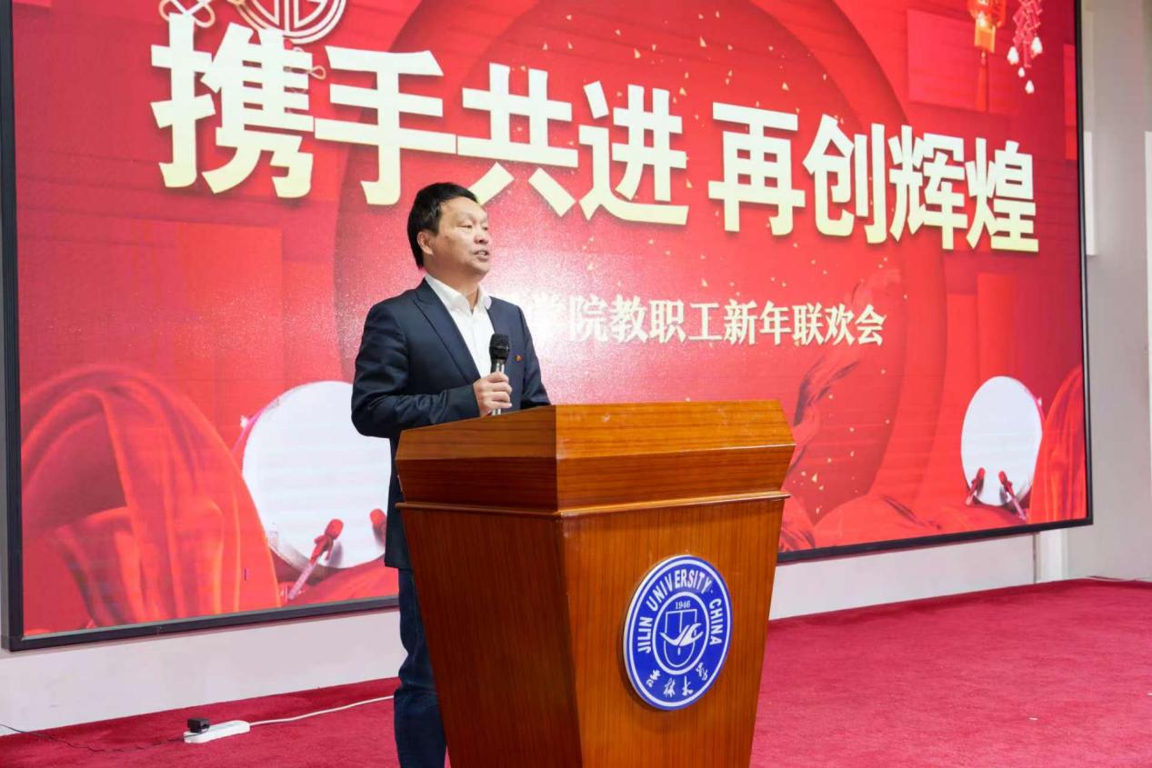 教职工新年联欢会在友谊会馆温馨举行。学院全体领导班子成员与150余名教职工欢聚一堂,共迎新春。安徽大地熊新材料股份有限公司常务副总经理、1993级校友陈静武,金黄集团总经理李明,长春启明光电科技有限公司总经理杨胜利,蜜桃视频