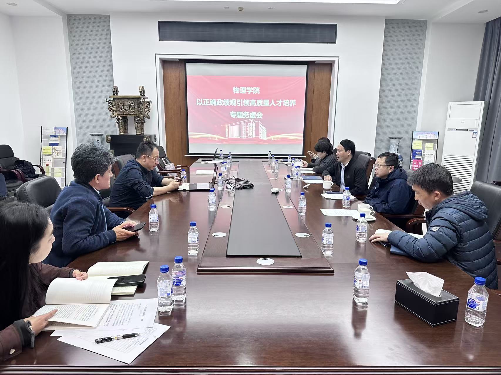 在物理楼301会议室召开2026年工作务虚会。会议以“以正确政绩观引领高质量人才培养”为主题,聚焦本科人才培养方案修订、课程体系优化与教育教学改革展开深入研讨。学校原常务副校长陈岗、学校教学委员会主任张汉壮、学校党建联络员刘卓,学院领导班子成员、各系(中心)主任、重点实验室负责人、各党支部书记及办公室负责人参加会议。学院党委书记杨景主持会议。