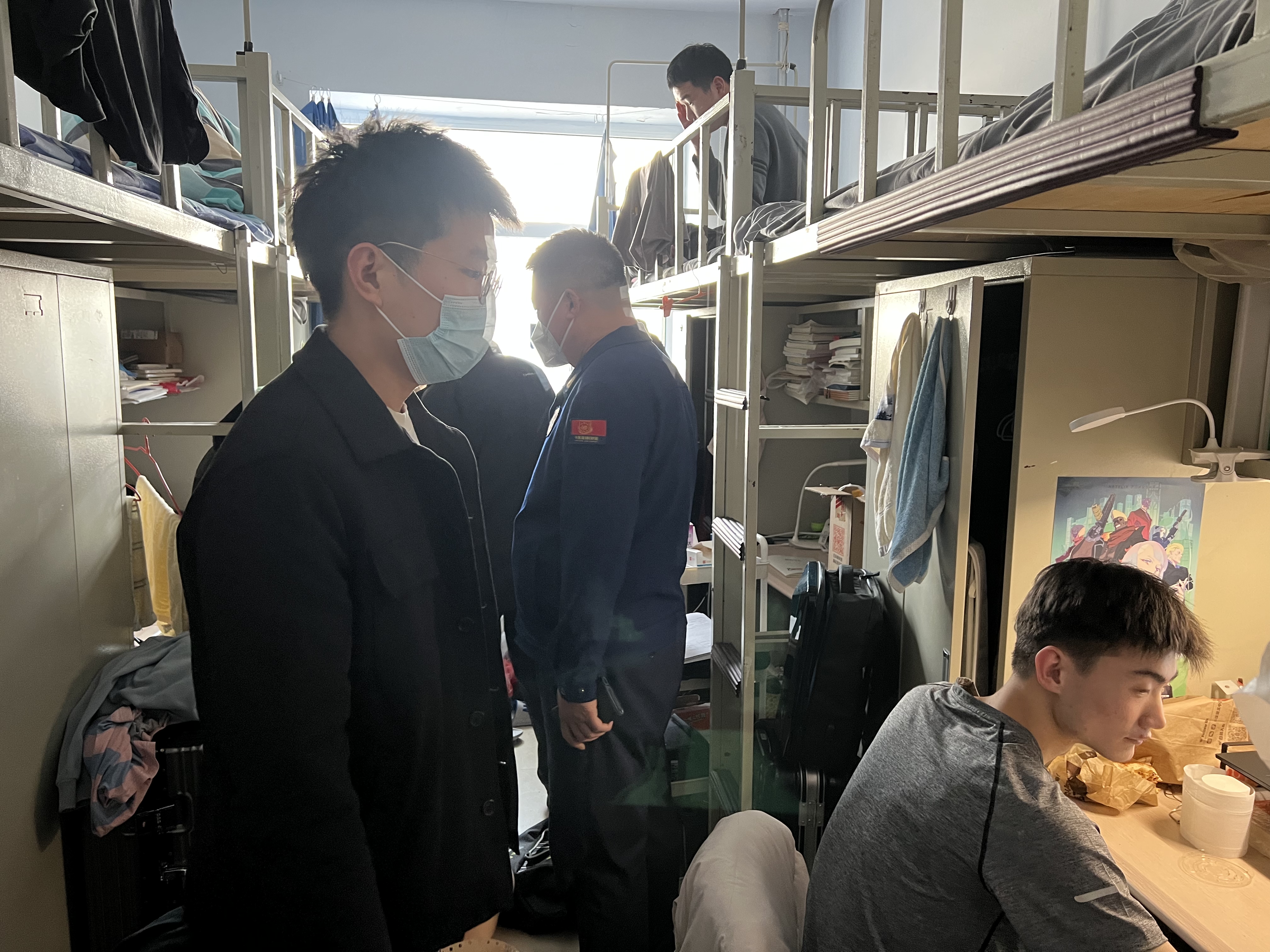 辅导员刘扬、车禹剑、王子璁前往南苑一公寓、南苑二公寓、南苑五公寓C区、南苑四公寓、文苑二公寓开展寝室安全消防检查,摸排学生公寓火灾隐患、不稳定因素和其他违规情况,消除学生公寓安全隐患,引导学生养成良好的卫生习惯。