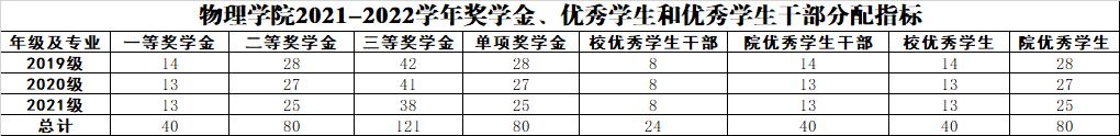 根据学校下达的学年奖学金、优秀学生和优秀学生干部评选名额指标,蜜桃视频 奖助工作领导小组按学校相关要求进行名额分配,确定蜜桃视频 2021-2022学年奖学金、优秀学生和优秀学生干部分配指标如下: