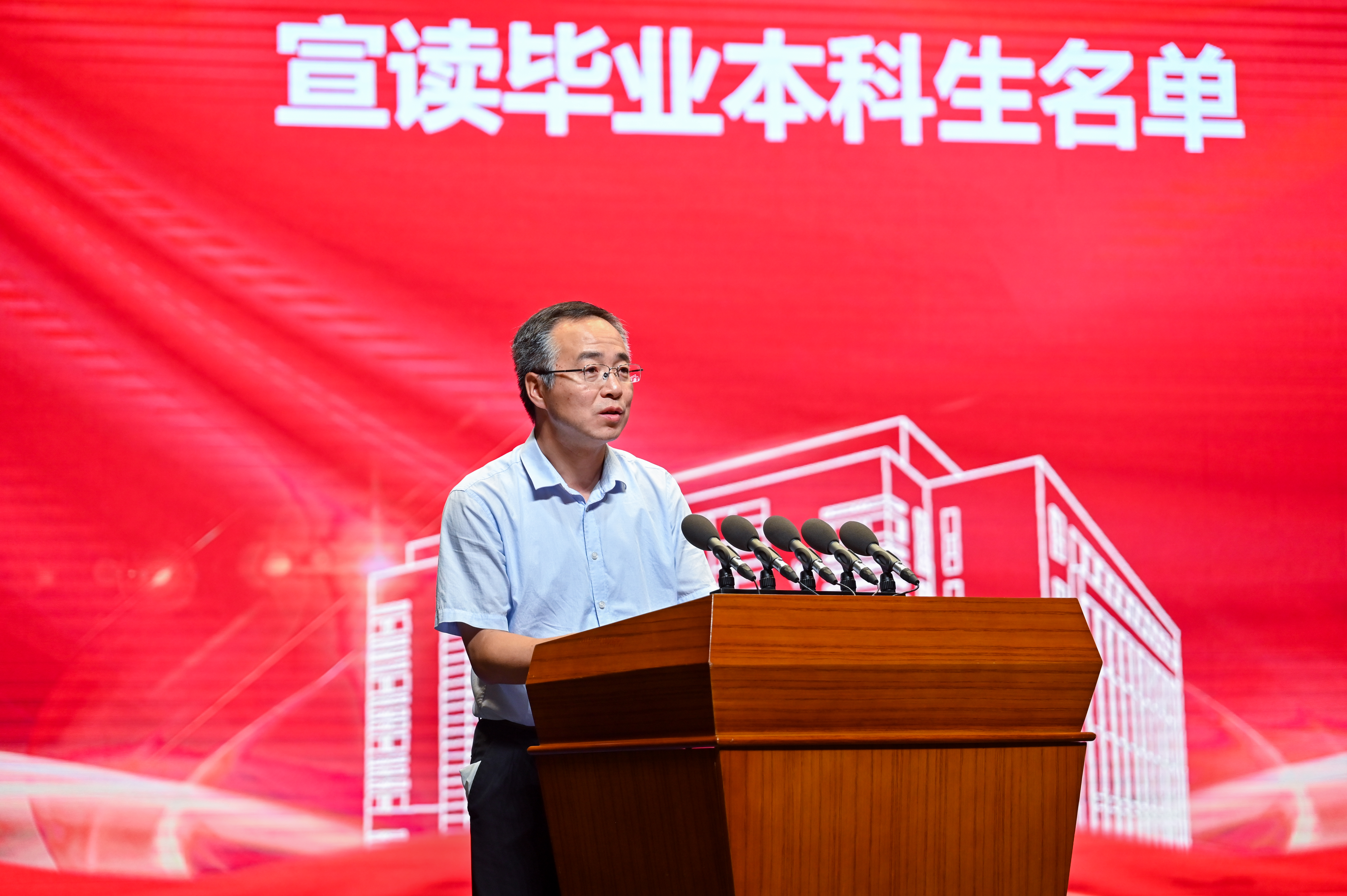 学院副院长孙成林宣读毕业研究生名单,学院副院长王海军宣读毕业本科生名单。