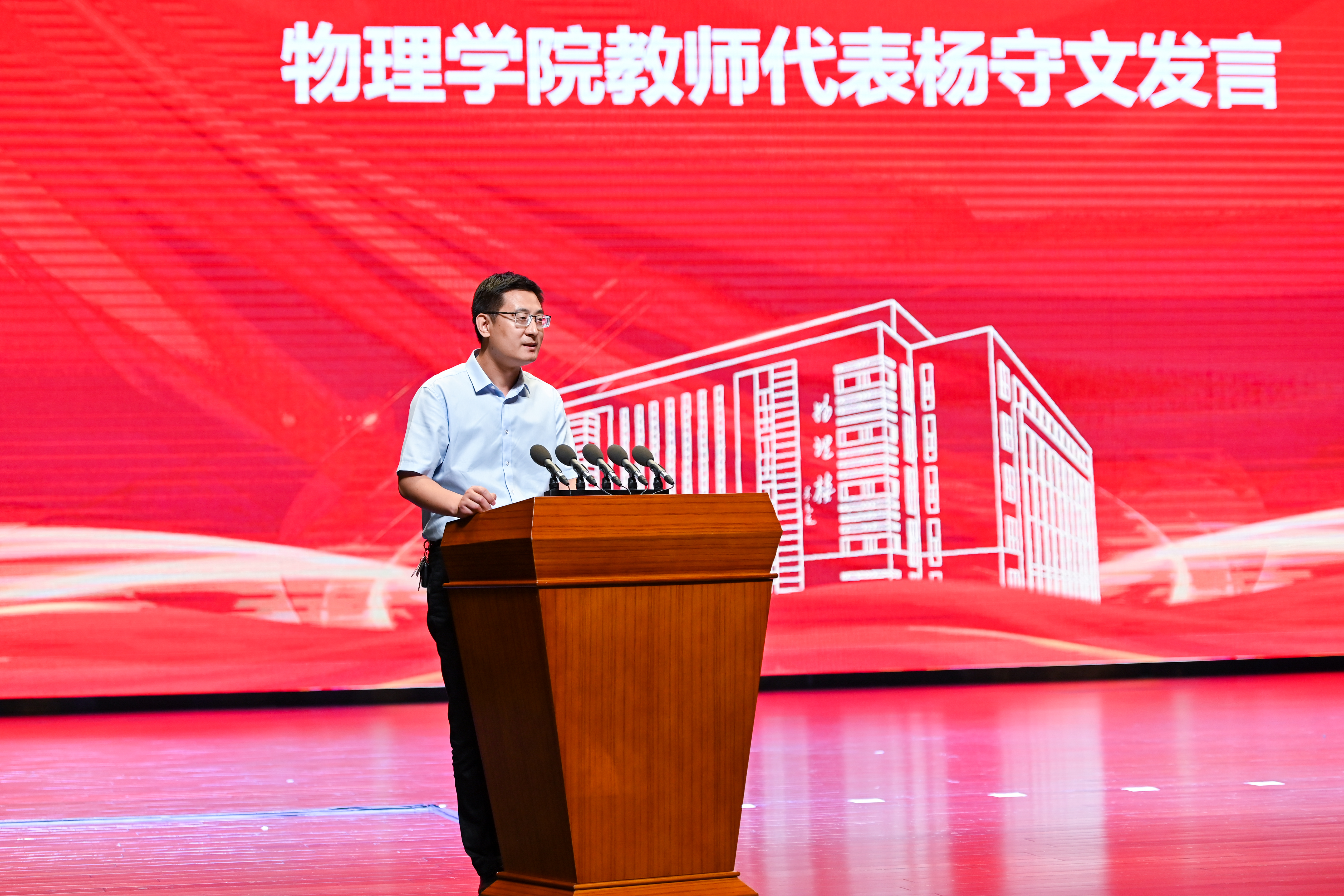 杨守文老师作为教师代表分享了自己毕业20年中的经历,对毕业生们提出了殷切期望:希望他们勇于面对挑战,不惧失败,追求卓越,同时保持感恩之心,去做感恩之事。他也希望毕业生们坚定自己的梦想与信念,在未来的日子里为之奋斗,去追求自己想要的生活。
