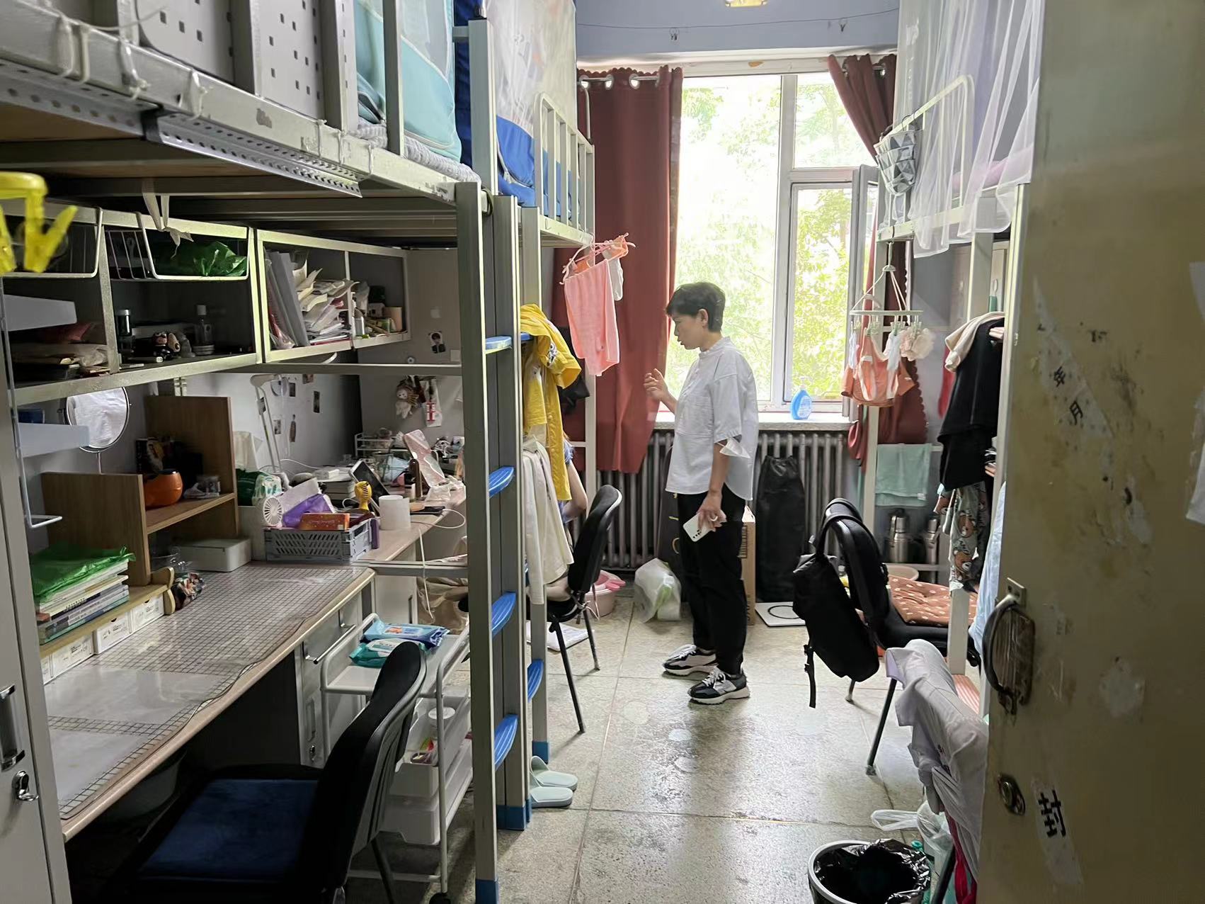 6月23日蜜桃视频 开展本科生寝室卫生安全检查,学院党委副书记杨讴菡、本科生辅导员张羽、刘扬、车禹剑、王子璁对学院涉及五栋寝室楼的274间寝室进行全覆盖检查。在检查中,发现了个别寝室卫生不佳,电源接线不规范、人走充电等安全隐患。学院对相关同学进行批评并限期整改。