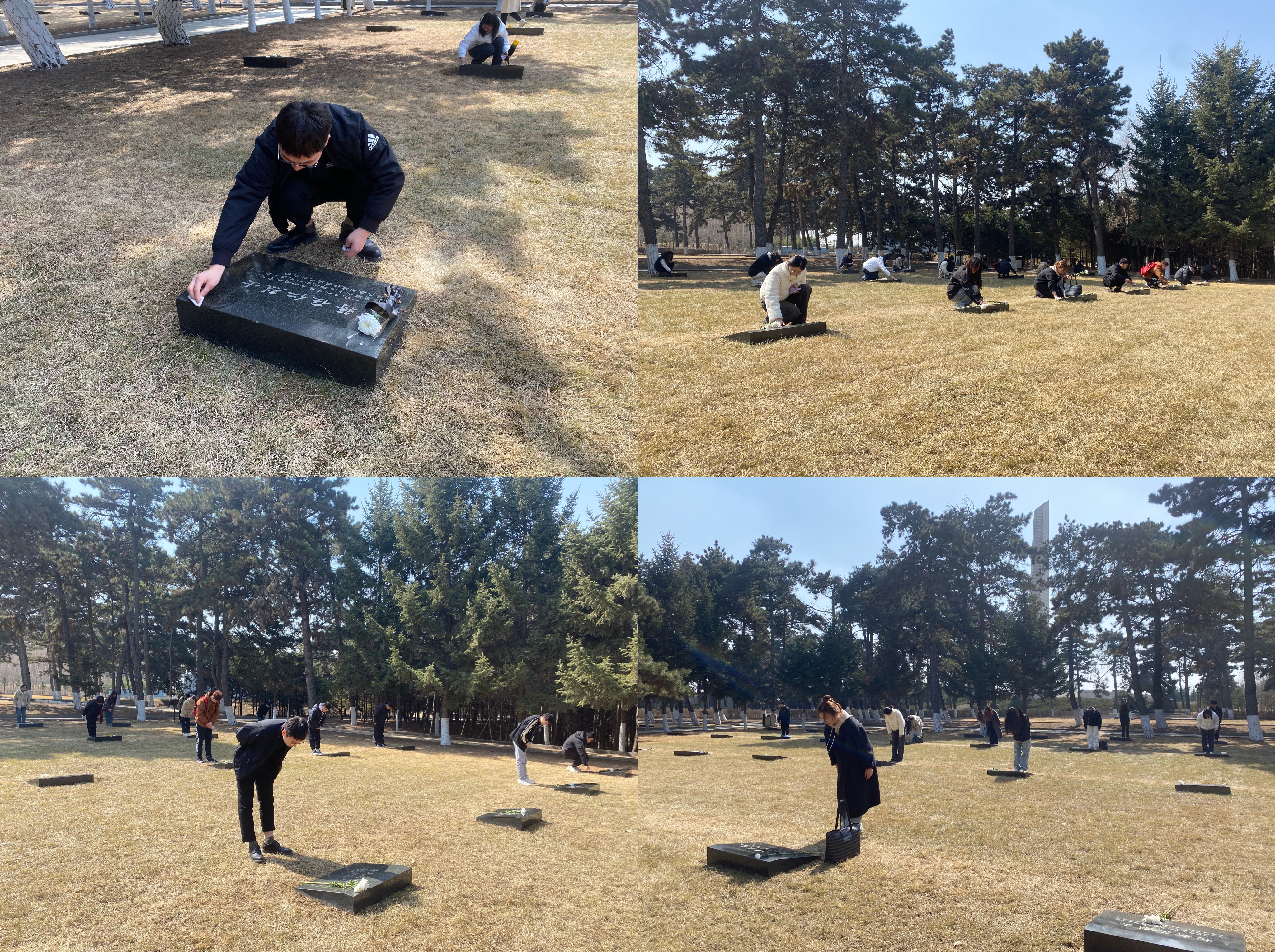 青山不语、丰碑永存。全体同志前往烈士墓区,瞻仰、擦拭烈士墓碑,碑前三鞠躬,用实际行动缅怀烈士、寄托哀思、致敬英雄。
