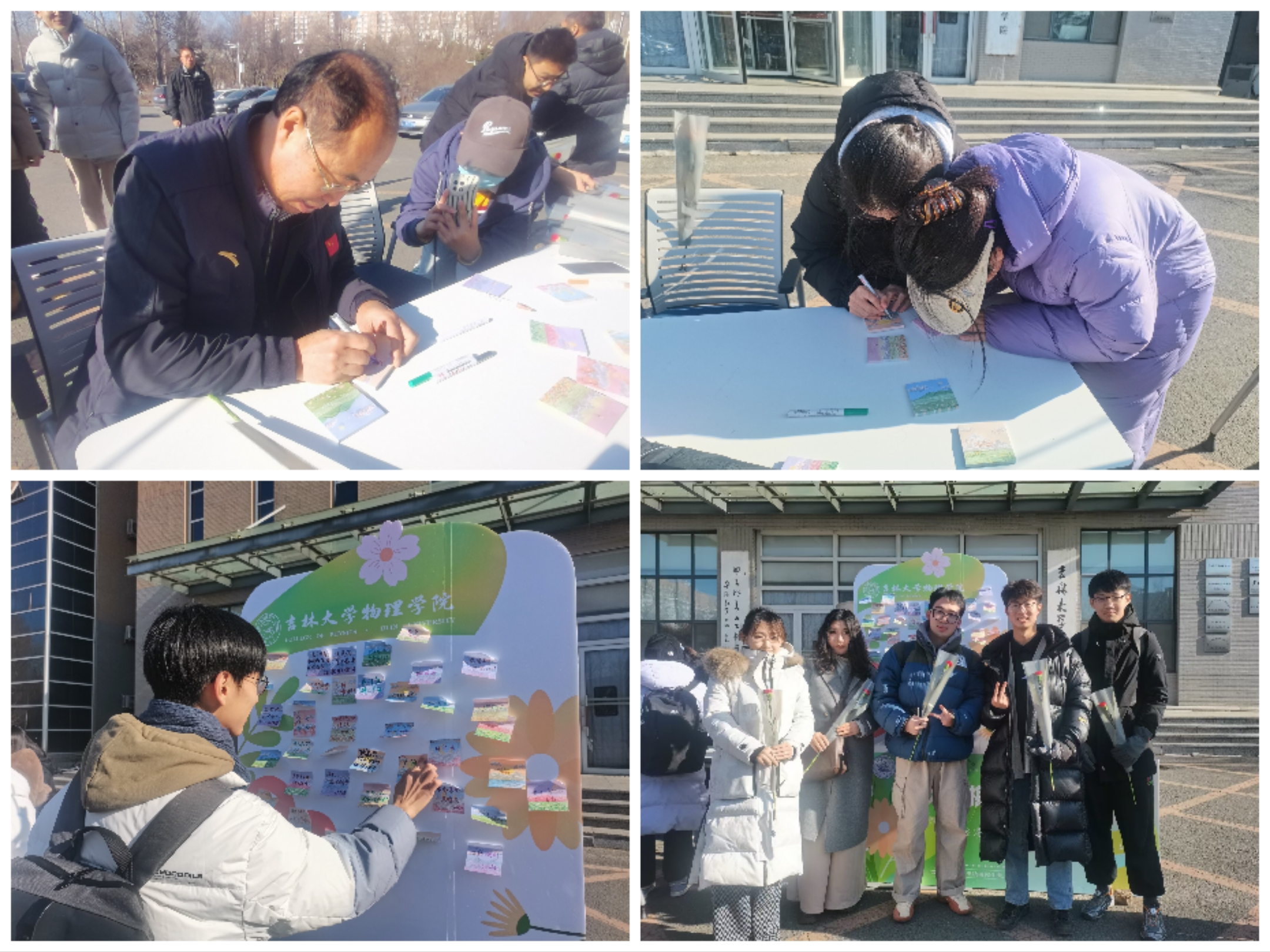 研究生办公室在物理楼门前举办“花绽心间,流动温暖——以物换花”冬日活动。尽管气温骤降,学院百余名师生带着满满的祝福和故事热情参与到活动中来,温暖了彼此的心。