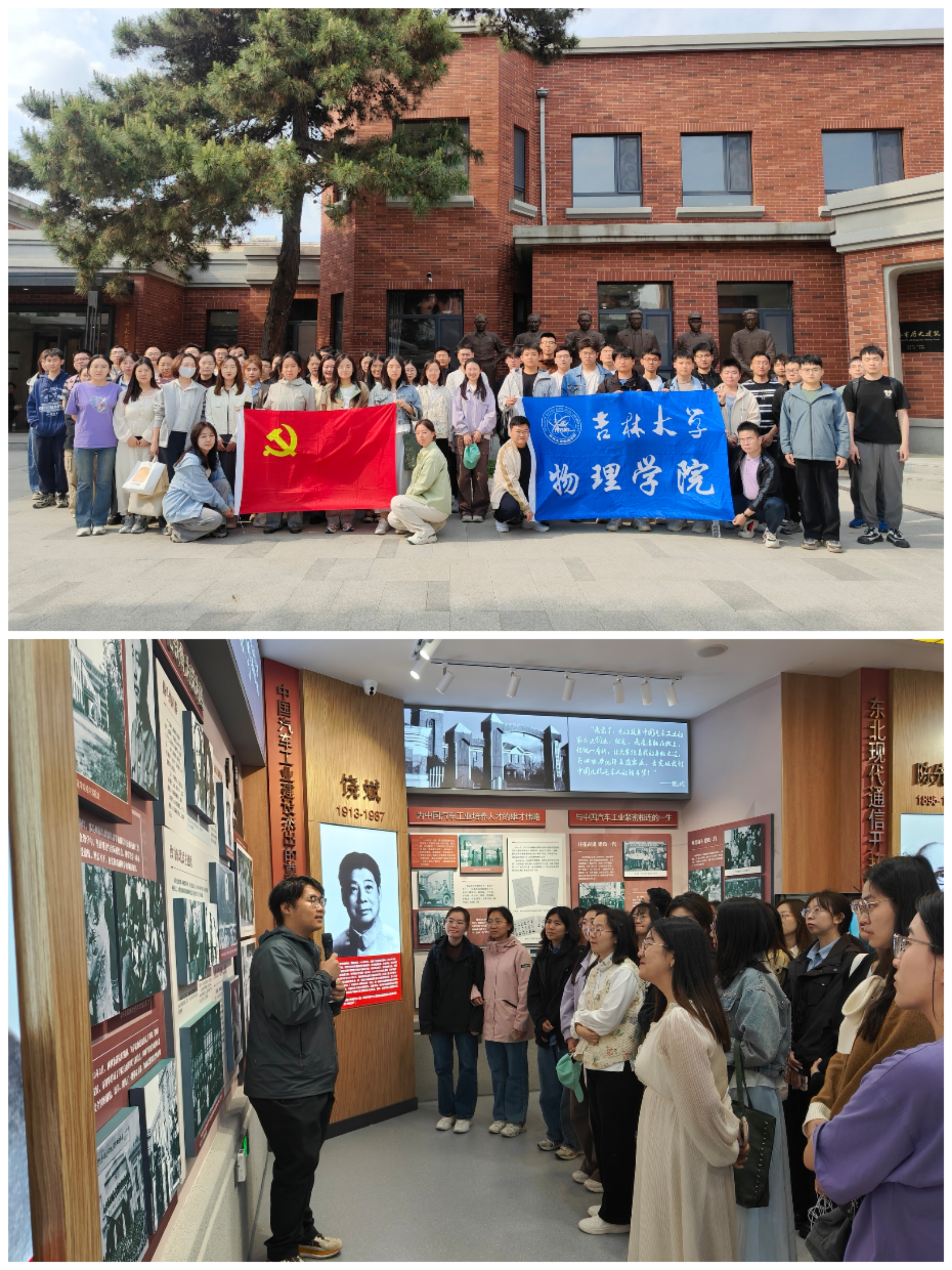 历史名人纪念馆。在讲解员解说下,林枫、饶斌、李四光等先贤的报国故事,通过文物、影像与实物鲜活呈现。从匡亚明校长在新中国初期拓荒办学,奠定吉大根基,到唐敖庆先生引领师生勇攀科研高峰,老一辈教育家胸怀大局、无私奉献、艰苦奋斗的“北上精神”,深深触动着每一位同学。