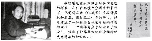 他以极度平和的心境看待政治上的失意。在社会环境十分困难的条件下,他坚持对科学真理的追求。作为一位物理学家失去了实验室的工作条件,搞科研困难可想而知,他转向了理论研究,开始研究多年思考的课题。在没有实验仪器,没有助手的情况下,凭借一台(机械式)手摇计算机和算盘,经过近二十年的努力,一种新的固体电子结构模型的理论——“固体与分子经验电子理论”终于建立起来了,它给出了计算晶体价电子结构的更为简单的新方法。